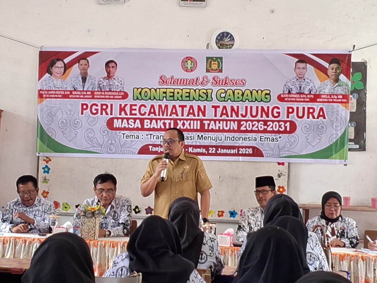 Ketua PGRI Kecamatan Tanjung Pura dalam laporannya menegaskan bahwa Konferensi Cabang merupakan forum tertinggi organisasi di tingkat kecamatan.