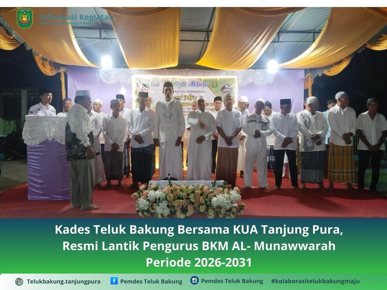 Acara resmi dipimpin langsung oleh Kepala Kantor Urusan Agama (KUA) Kecamatan Tanjung Pura, H. Idimyati, S.Ag, didampingi Kepala Desa Teluk Bakung, Riza Ansyari, S.Pd.