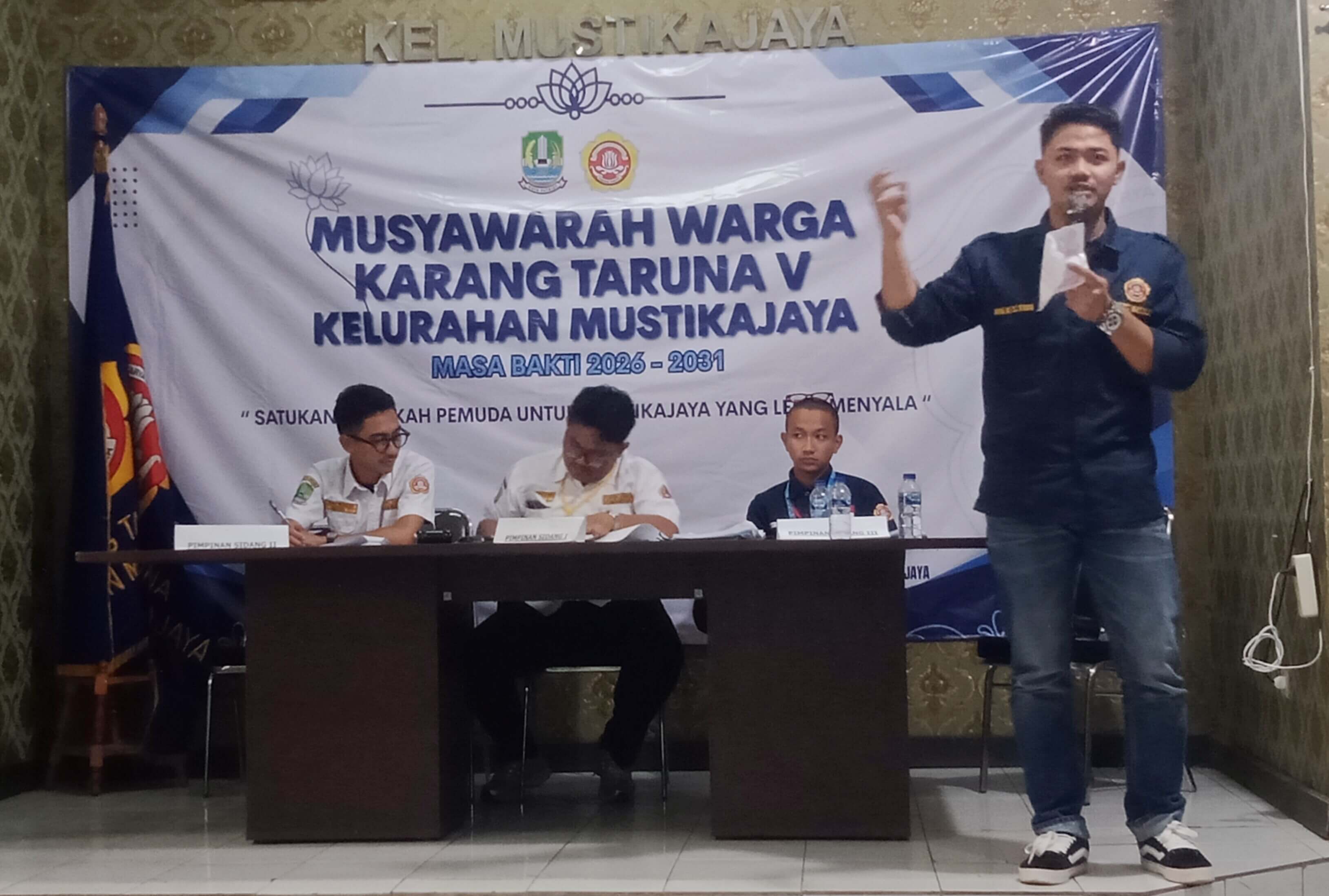Musyawarah Warga Karang Taruna (MWKT) Kelurahan Mustikaya, Kecamatan Mustikajaya, Kota Bekasi, rampung digelar secara tertib dan lancar, Minggu (25/1). Hasilnya, Toni ditetapkan sebagai Ketua Terpilih Karang Taruna Kelurahan Mustikajaya untuk masa bakti 2025-2031.