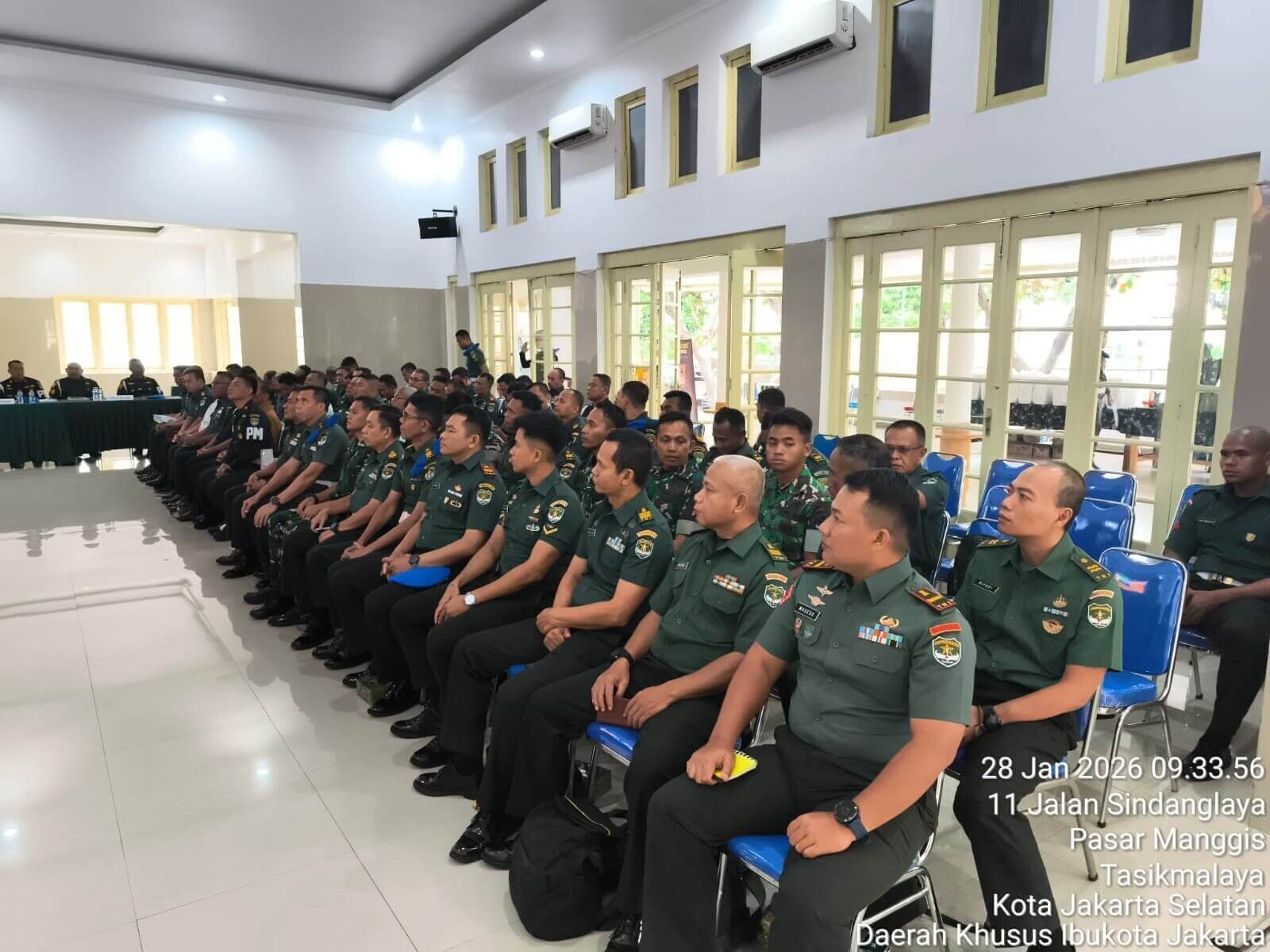 Pomdam Jaya-Jakarta Selatan, Danpomdam Jaya/Jayakarta Kolonel Cpm Unggul Wahyudi, S.H, M.Tr. Han, buka acara Sosialisasi Ops Gaktib dan Yustisi Pomdam Jaya Tahun 2026 di Aula Mapomdam Jaya Jl. Sultan Agung No 33 Jakarta Selatan, Rabu (28/1/26).