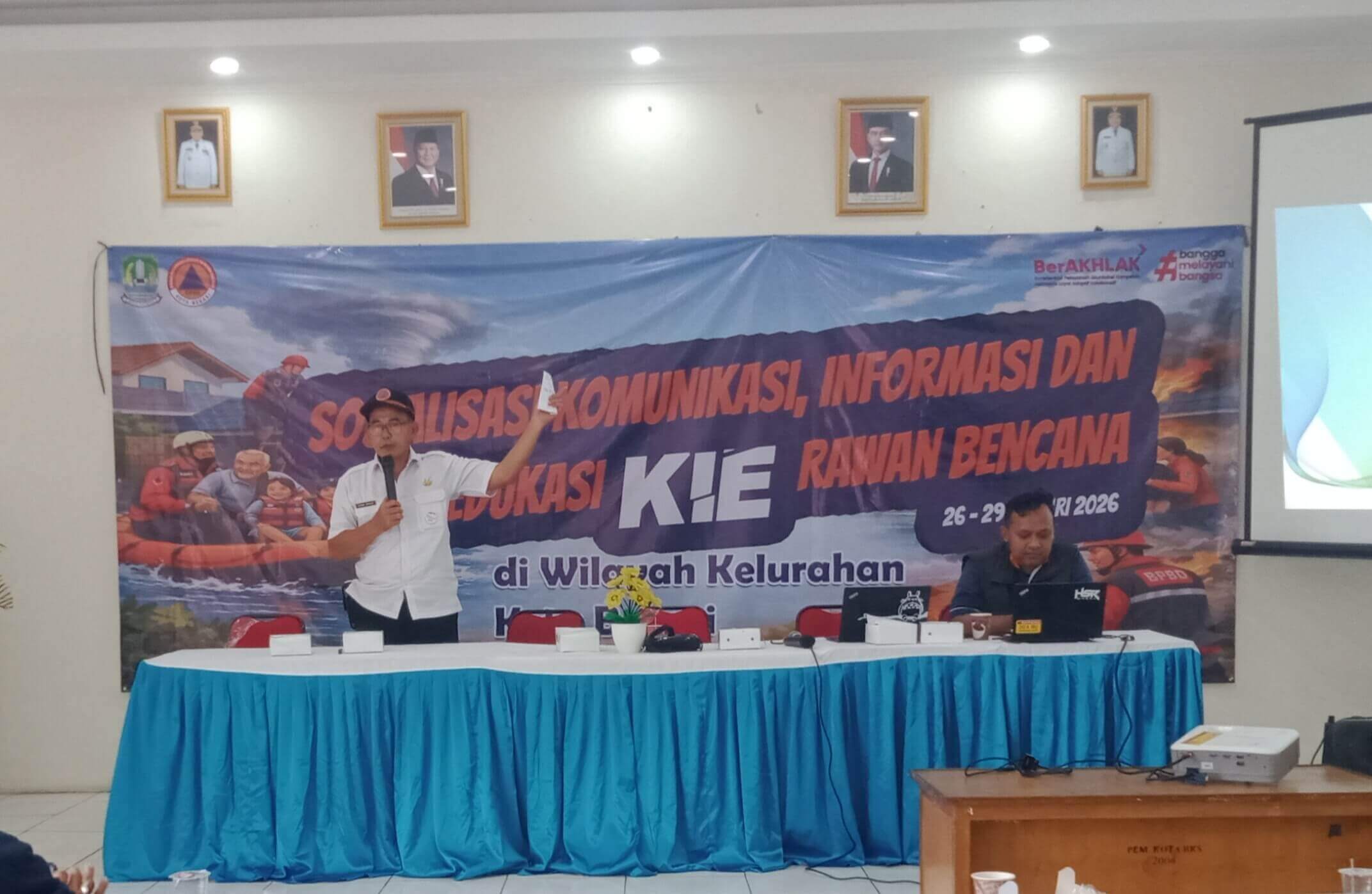 Pihak Badan Penanggulangan Bencana Daerah (BPBD) Kota Bekasi menggelar sosialisasi tentang penanganan bencana, Rabu (28/1). Sosialisasi yang menggunakan metode Komunikasi Informasi dan Edukasi (KIE) menyasar kalangan masyarakat Kelurahan Bojongmenteng, Kecamatan Rawalumbu.