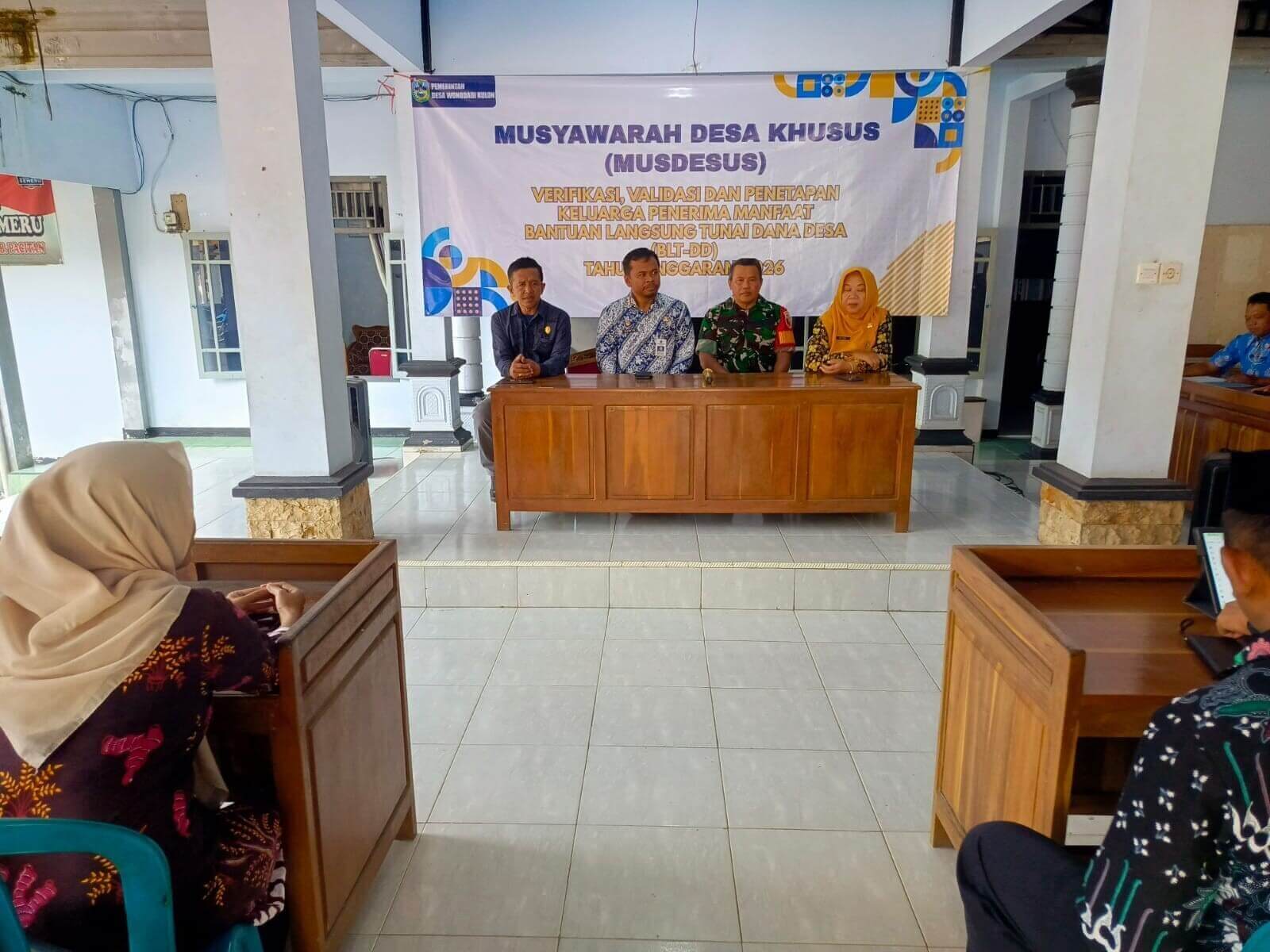 Salah satu bentuk nyata dukungan tersebut ditunjukkan oleh Babinsa Koramil 0801/07 Ngadirojo, Sertu Tri Sutrisno, yang menghadiri kegiatan Musyawarah Desa Khusus (Musdessus) dalam rangka pembahasan dan penetapan Keluarga Penerima Manfaat (KPM) Bantuan Langsung Tunai (BLT) Dana Desa serta pembahasan APBDes Tahun Anggaran 2026. Kegiatan tersebut digelar di Balai Desa Wonodadi Kulon, Kecamatan Ngadirojo, Kabupaten Pacitan, Kamis (29/1/2026).