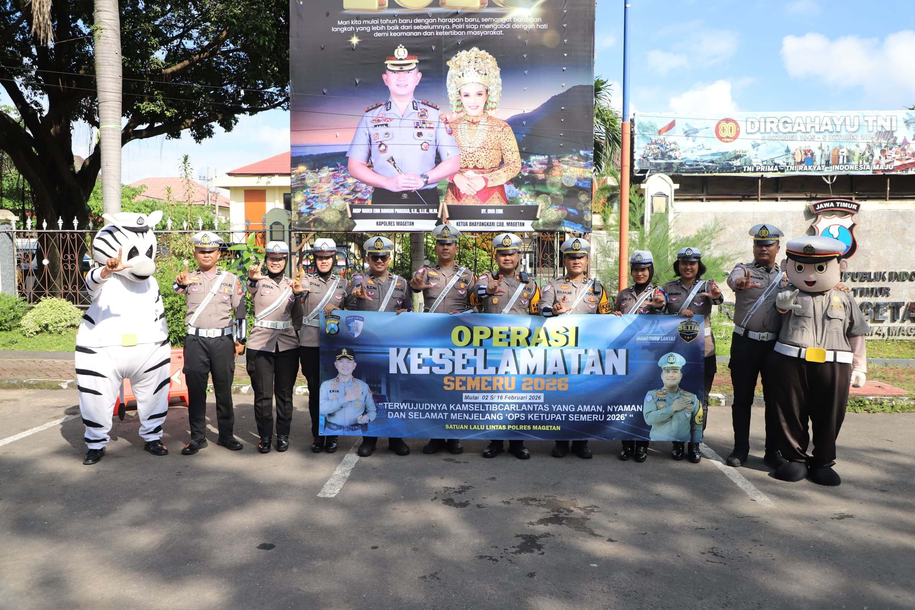 Kegiatan sosialisasi Operasi Keselamatan Semeru 2026 tersebut semakin menarik perhatian masyarakat dengan kehadiran ikon Satlantas Polres Magetan, yakni boneka Si Polin dan Zebra, yang turut membagikan brosur sosialisasi kepada para pengendara. Kehadiran maskot tersebut disambut antusias dan menciptakan suasana yang ramah serta edukatif di tengah aktivitas lalu lintas.