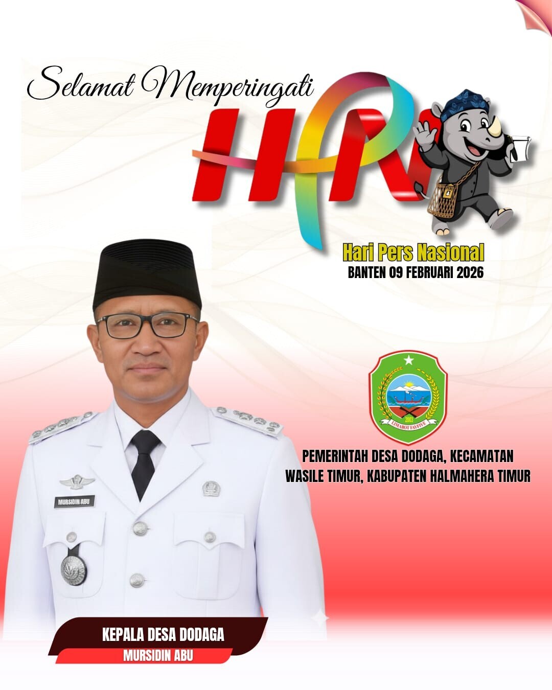 Pemerintah Desa Dodaga Kec. Wasile Timur Kab. Halmahera Timur Prov. Maluku Utara Mengucapkan Selamat Memperingati Hari Pers Nasional Tahun 2026