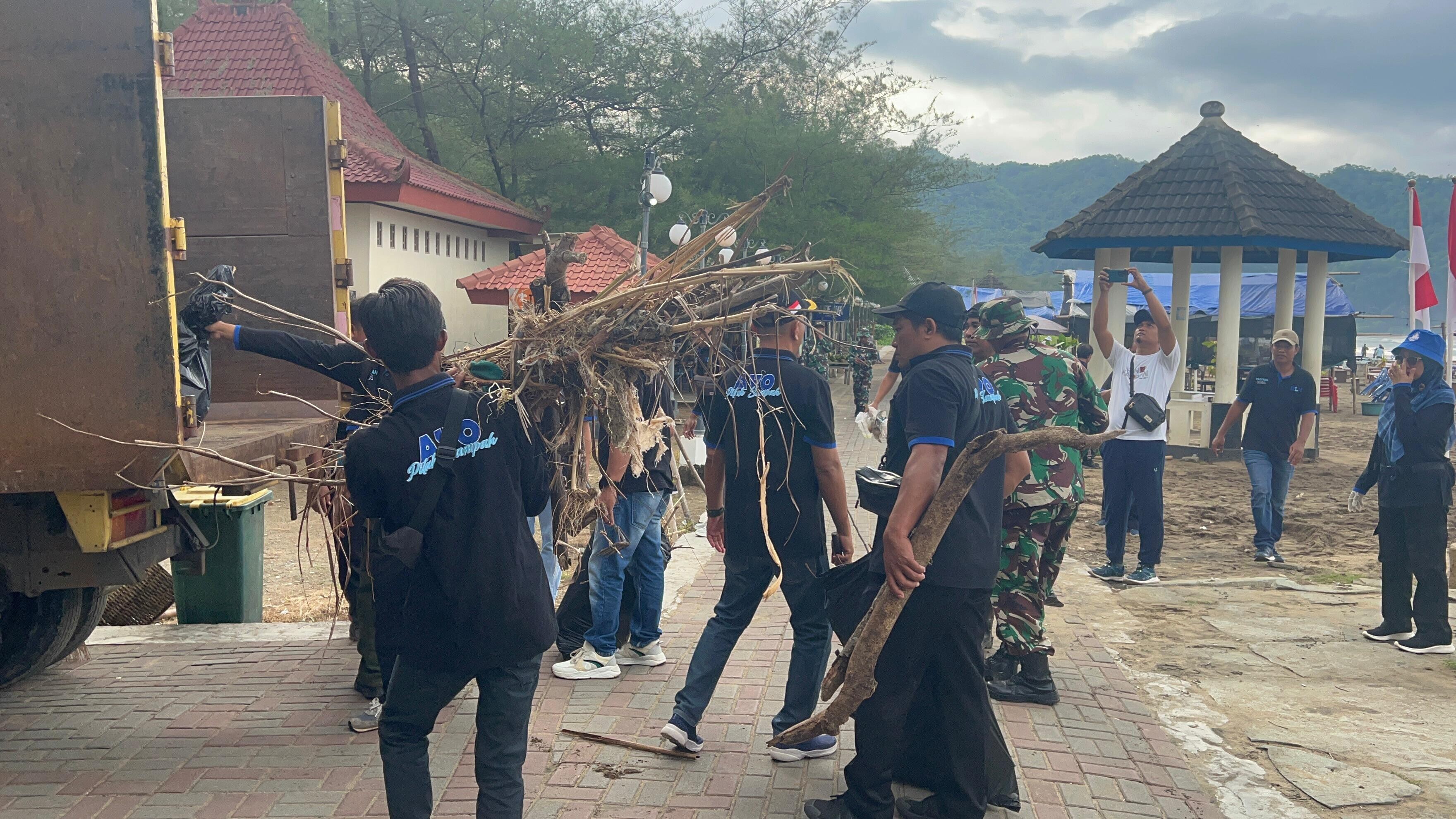 “Mari kita bersama-sama membersihkan sampah yang ada di lingkungan pesisir Pantai Pancer Door ini karena kebersihan merupakan tanggung jawab kita bersama,” ungkap Mayor Muhajir.
