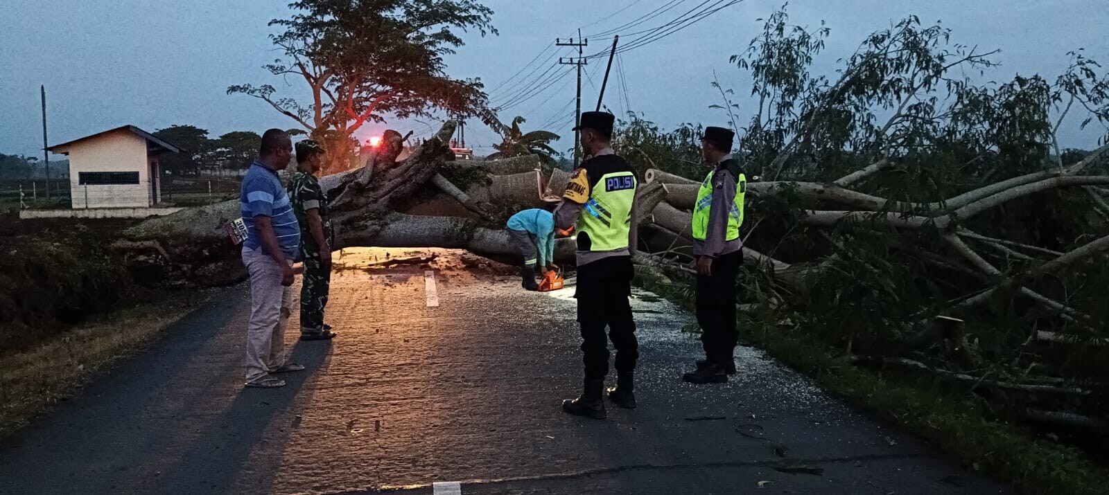 Kapolsek Kedunggalar AKP Karno, S.H., mendatangi dan memimpin langsung evakuasi pohon tumbang tersebut, bersama Aiptu Palal, Aiptu Sohibul Iksan, Aiptu Arif W., serta Aipda Danang. Petugas segera melakukan pengamanan lokasi dan berkoordinasi dengan pihak terkait.
