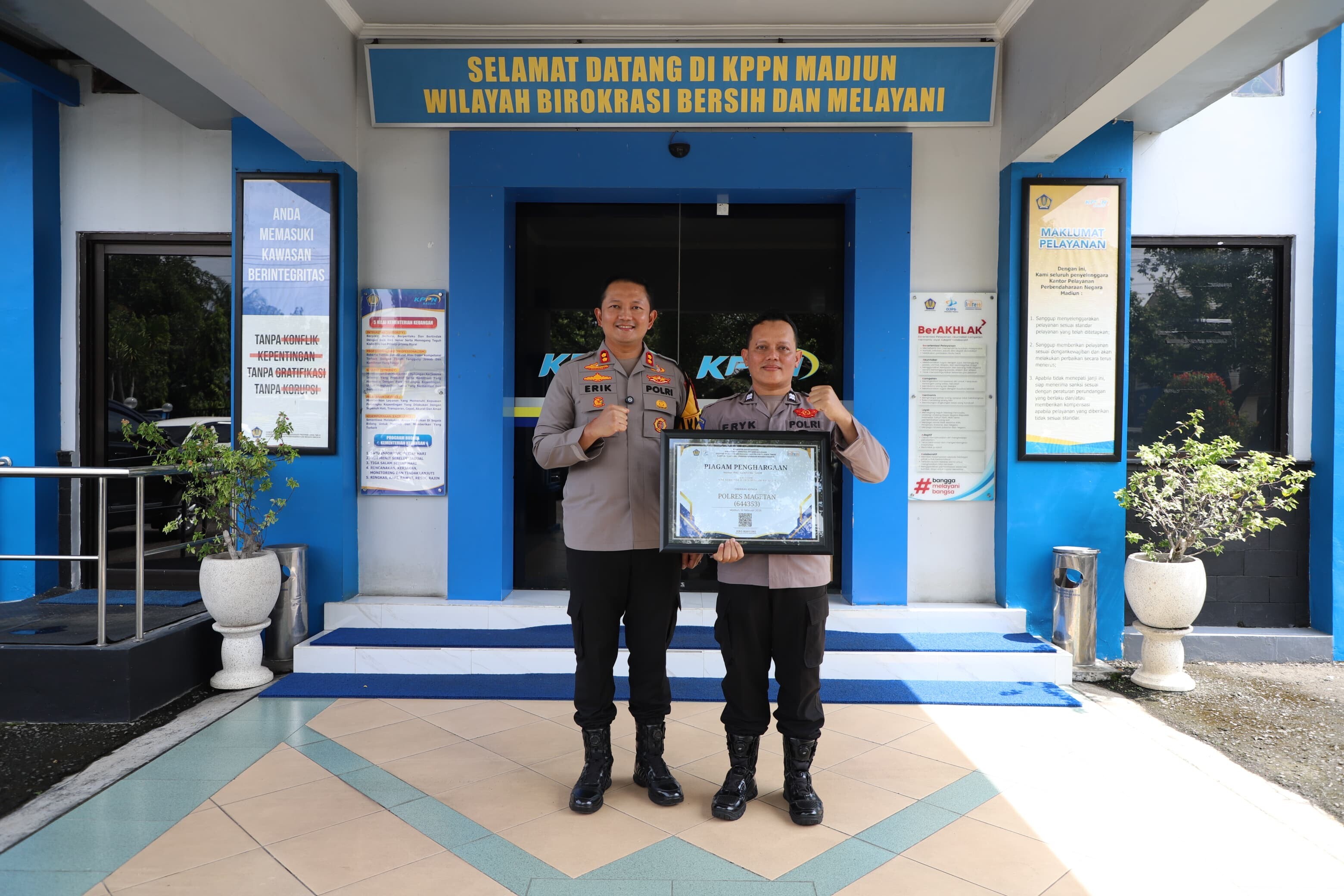 Penghargaan tersebut diterima langsung oleh Kapolres Magetan, AKBP Raden Erik Bangun Prakasa, bertempat di Kantor Pelayanan Perbendaharaan Negara (KPPN) Madiun, Jalan Salak, Kota Madiun, Rabu (11/2/2026).