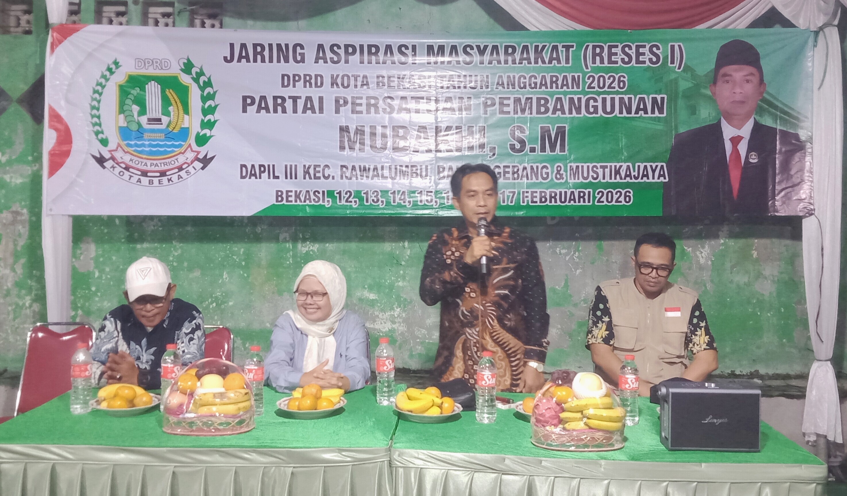 Mengawali kegiatan Reses I Tahun Anggaran 2026, anggota DPRD Kota Bekasi dari Fraksi Amanat Pembangunan, Mubakhi SM, melakukan penjaringan aspirasi masyarakat. Dua lokasi di wilayah Kelurahan Mustikajaya, Kecamatan Mustikajaya, dikunjunginya dalam sehari, Kamis (12/2), yakni RW 09 dan perumahan Mutiara Gading Timur RW 033.