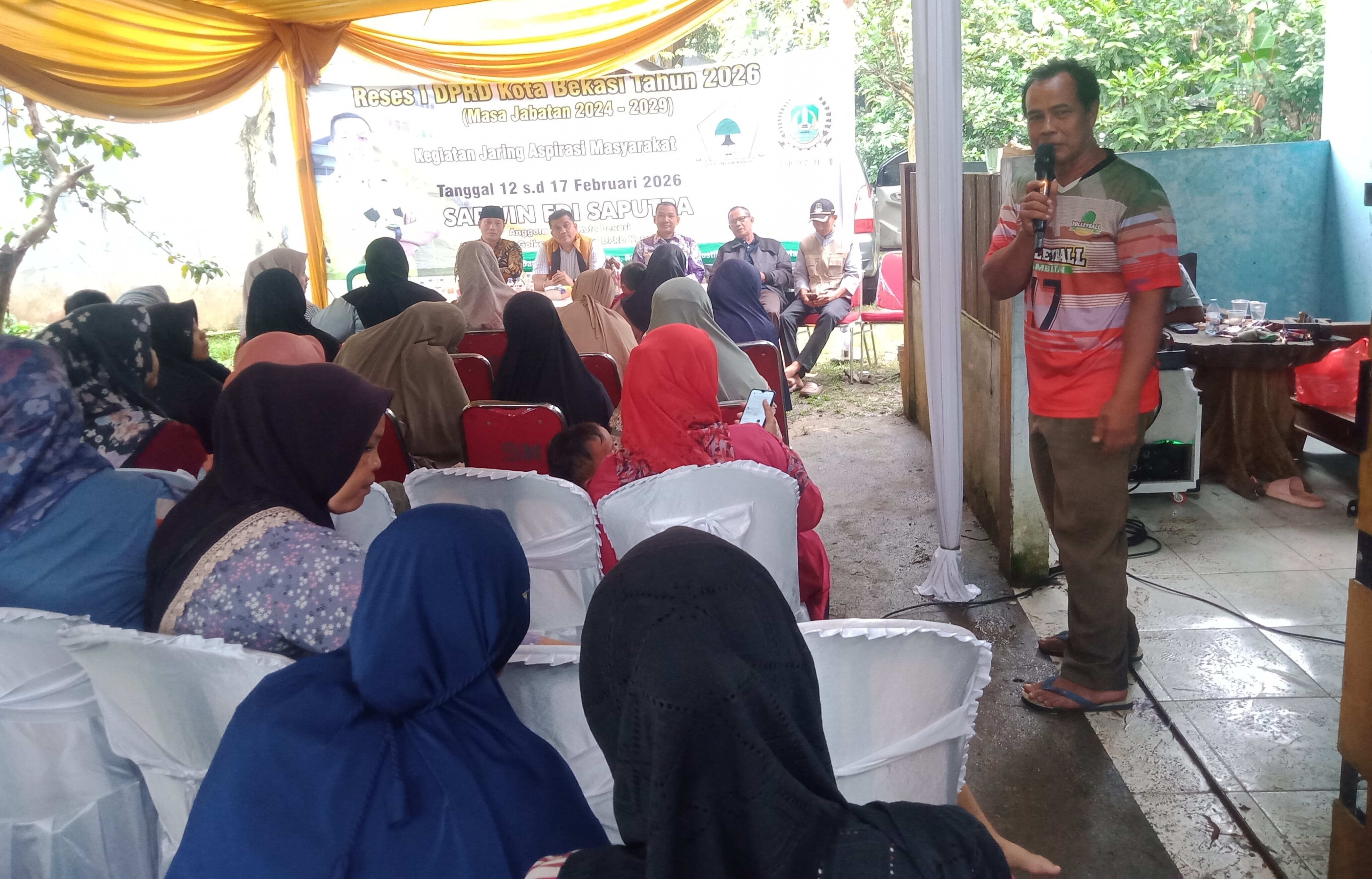 Kalangan masyarakat Kelurahan Cimuning, Kecamatan Mustikajaya, Kota Bekasi, menghadiri kegiatan Reses I Tahun 2026 yang digelar anggota DPRD Kota Bekasi, Sarwin Edi Saputra, Kamis (12/2). Kegiatan ini dijadikan kesempatan bagi masyarakat untuk menyampaikan usulan atai aspirasi terkait pembangunan yang dibutuhkan lingkungan.