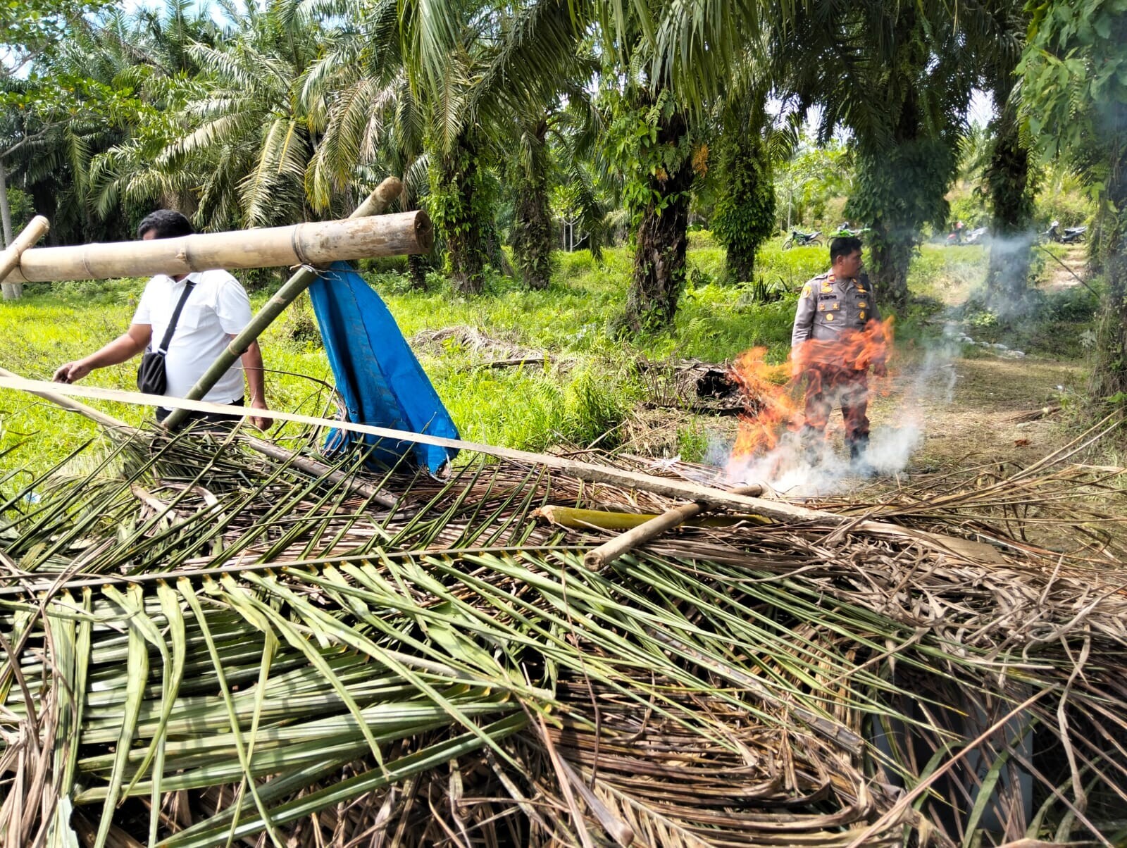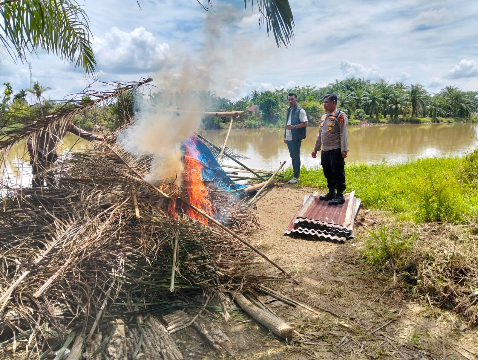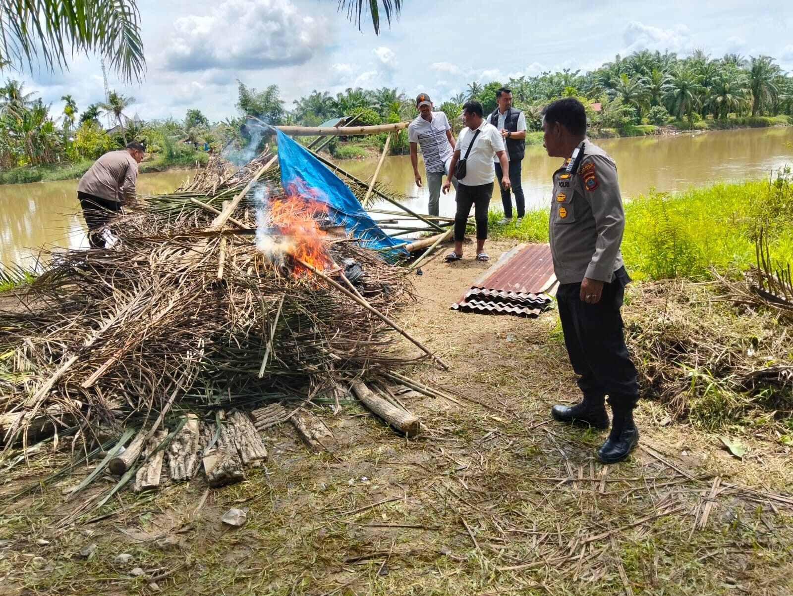 Tak berhenti sampai di situ, aparat juga memusnahkan lokasi yang diduga menjadi sarang penyalahgunaan narkoba dengan cara dibakar, sebagai bentuk tindakan tegas agar tempat tersebut tidak lagi dimanfaatkan untuk aktivitas melawan hukum.