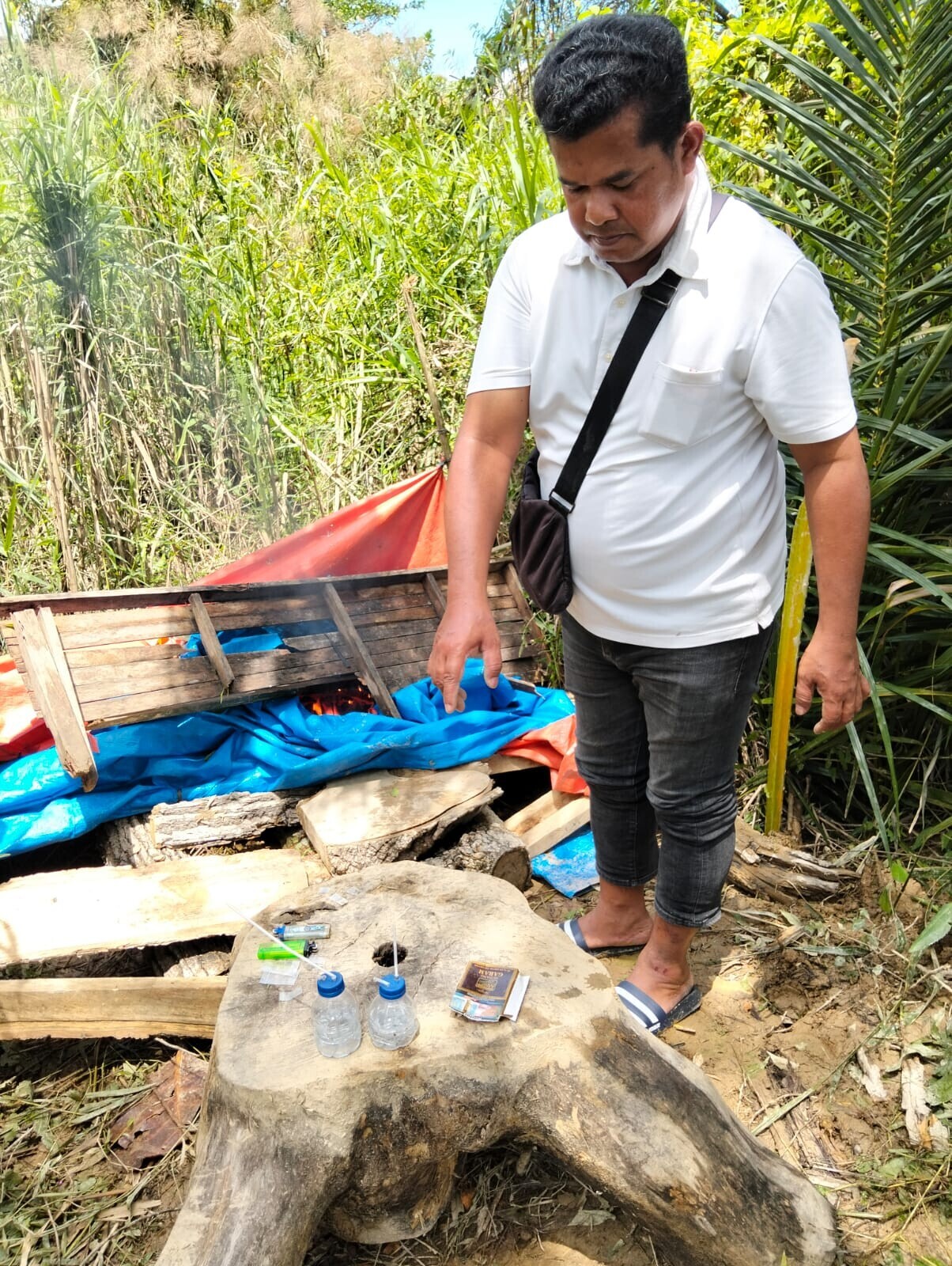 Dipimpin langsung Kapolsek Tanjung Pura, IPTU Mimpin Ginting, S.H., M.H., personel bergerak menuju lokasi yang berada di tepi sungai Dusun Anggrek sekitar pukul 12.15 WIB.
