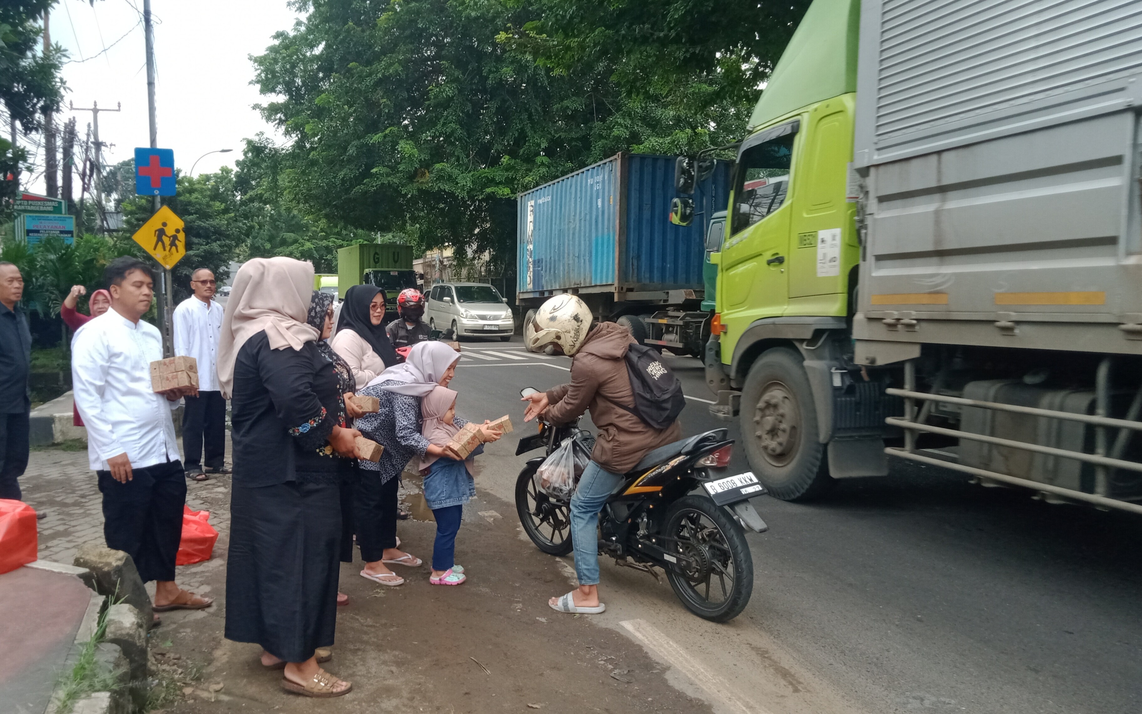 Dalam rangka mengisi momentum Bulan Suci Ramadhan, seluruh aparatur Kantor Kelurahan Bantargebang, Lecamatan Bantargebang, Kota Bekasi, kembali melaksanakan program berbagi kepedulian bertajuk Jumat Berkah dengan membagikan puluhan takjil (makanan berbuka puasa) secara gratis, Jumat (20/2). Sasaran kegiatan ini adalah masyarakat pejalan kaki dan pengendara yang melintasi Jalan Raya Narogong.