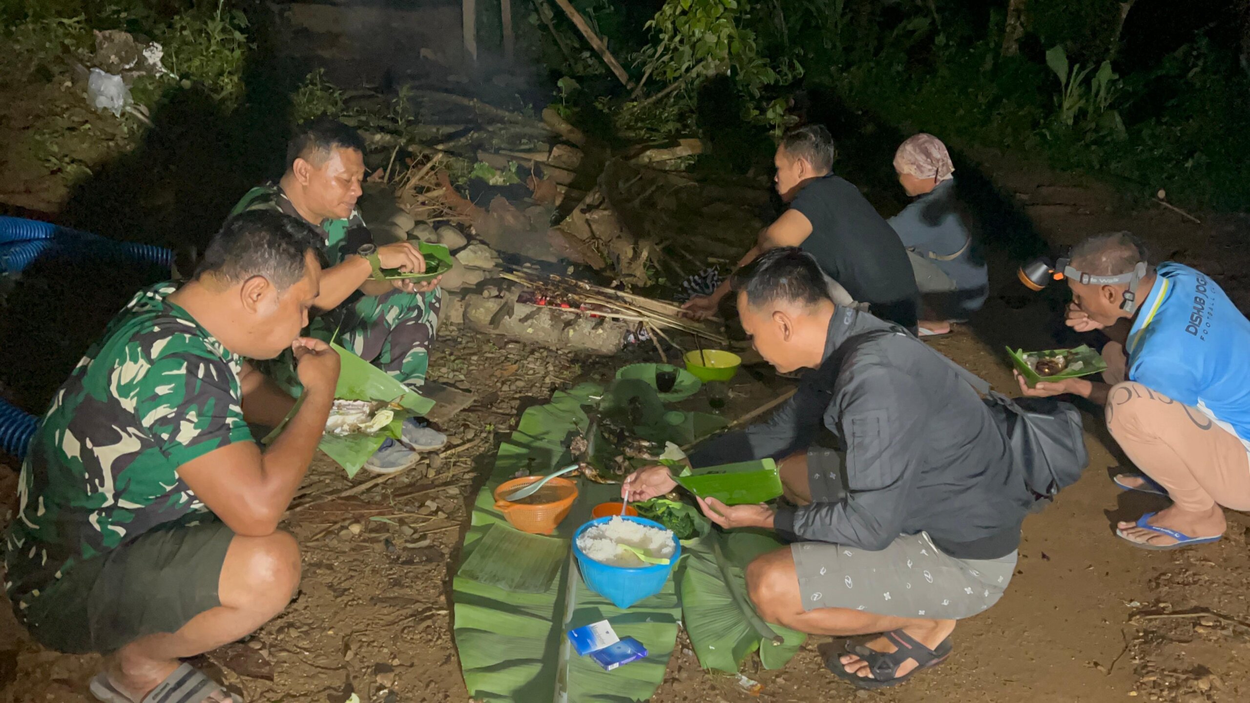 Selesai melaksanakan kegiatan kerja lembur TNI bersama warga membaur mengadakan bakar ikan dan makan bersama, sebagai bentuk kebersamaan dan meningkatkan kekompakan serta semangat dalam melaksanakan kegiatan selanjutnya.
