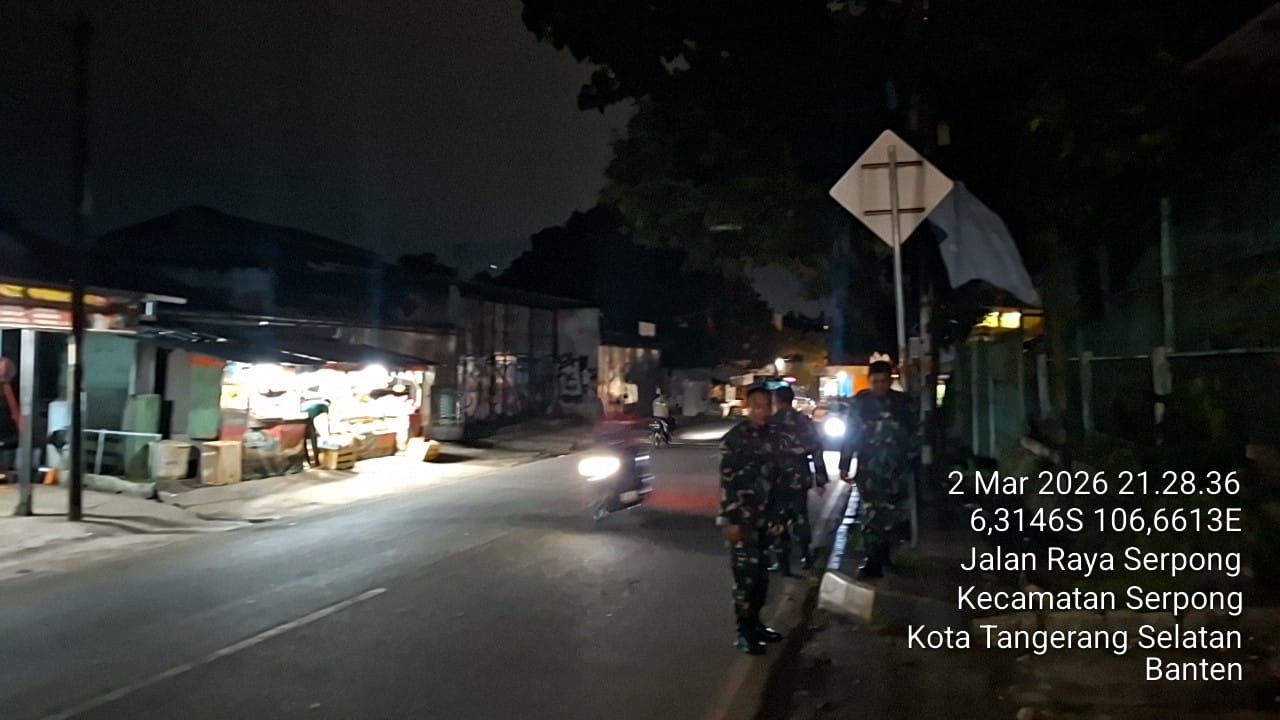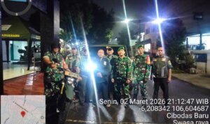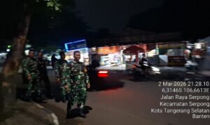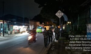 Kota Tangerang – Dalam upaya menciptakan lingkungan yang aman dan kondusif, Babinsa Koramil 06/Cibodas dan Babinsa Koramil 03/Serpong, di bawah jajaran Kodim 0506/Tgr, bersinergi bersama Komponen Pendukung (Komduk) melaksanakan patroli Siskamling di wilayah teritorial Kodim 0506/Tgr, meliputi Kota Tangerang dan Kota Tangerang Selatan (Tangsel), Senin malam (03/03/2026).