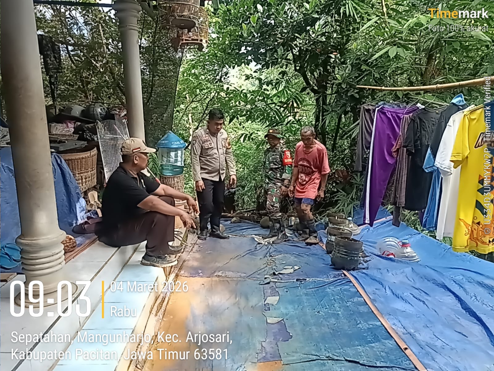 Sesampainya di lokasi Babinsa berkoordinasi untuk melakukan penanganan sementara dengan menutup terpal agar ketika hujan tidak tergerus air hujan, sebelum dilakukan penbenahan/kerja bakti bersama warga dan aparat setempat.