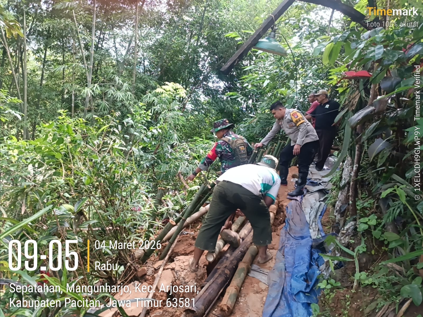 Mediapatriot.co.id Pacitan – Intensitas curah hujan yang cukup tinggi di wilayah kabupaten Pacitan, mengakibatkan longsornya tebing jalan bawah rumah warga di Dusun Tegal RT 001/RW 005 Desa Mangunharjo, Kecamatan Arjosari, Kabupaten Pacitan, Selasa (3/3/2026) malam, Kejadian ini mengakibatkan jalan depan rumah warga atas nama Endri daniel widiantoro mengalami longsor.