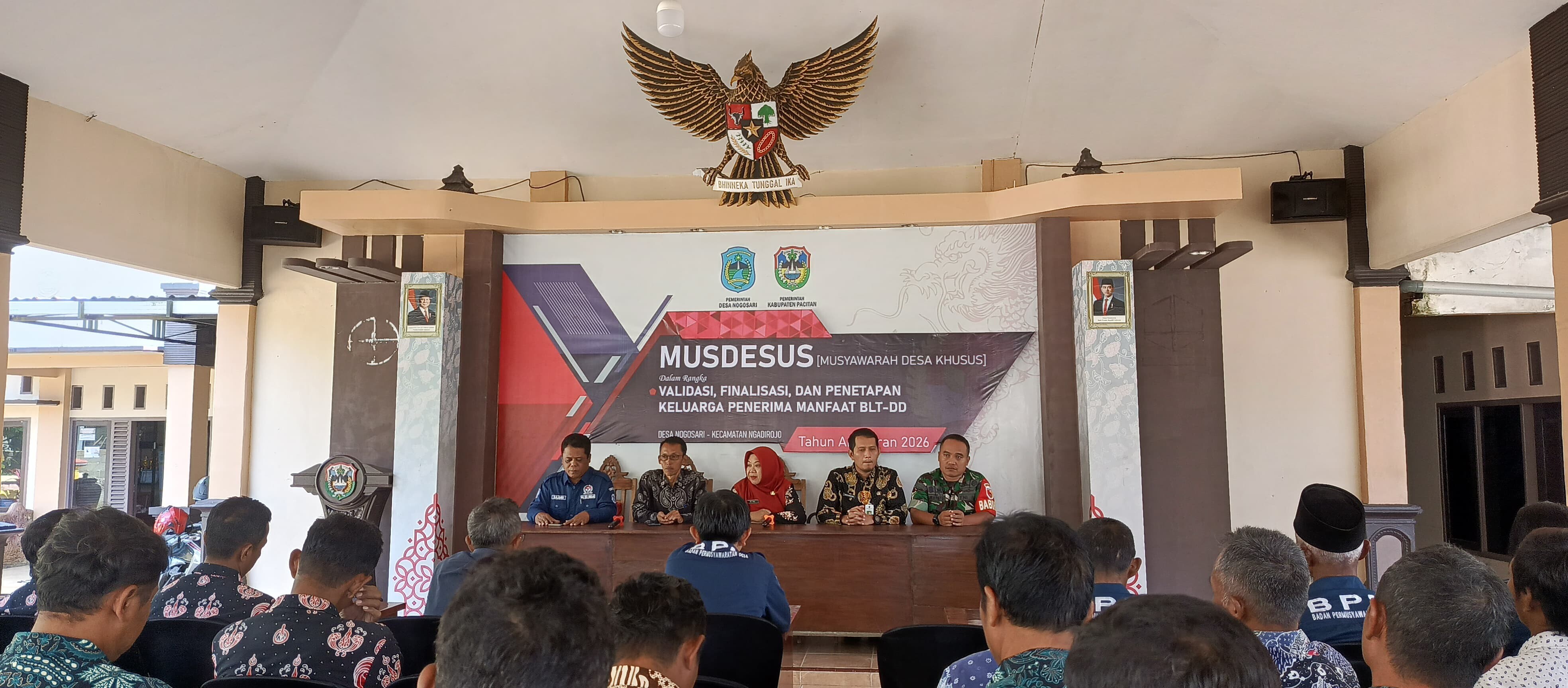 mediapatriot.co.id Pacitan, – Guna memastikan penyaluran Bantuan Langsung Tunai Dana Desa (BLT-DD) berjalan transparan, adil, dan tepat sasaran, Babinsa Koramil 0801/07 Ngadirojo turut menghadiri kegiatan Musyawarah Desa (Musdes) Penentuan Keluarga Penerima Manfaat (KPM) BLT-DD serta Penetapan Prioritas Penggunaan Dana Desa Tahun Anggaran 2026, bertempat di Balai Desa Nogosari, Kecamatan Ngadirojo, Kabupaten Pacitan, Jumat (6/3/2026).