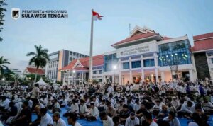 PALU, mediapatriot.co.id – Gubernur Sulawesi Tengah Anwar Hafid bersama Wakil Gubernur Reny A. Lamadjido menggelar kegiatan buka puasa bersama bertajuk “Sulteng Nambaso Bersama Masyarakat” yang dirangkaikan dengan Sosialisasi Bahaya Narkoba di halaman Kantor Gubernur Sulawesi Tengah, Jumat (6/3/2026). Kegiatan ini dihadiri ribuan masyarakat serta para siswa SMA dan SMK se-Kota Palu.