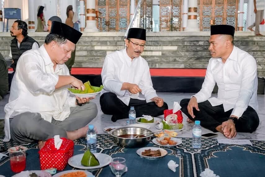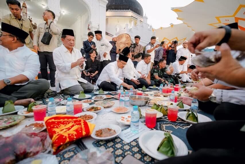 Momen tersebut menjadi potret spiritual yang kuat: pemimpin dan rakyat duduk bersama, berbagi makanan, dan merasakan keberkahan Ramadhan dalam satu kebersamaan yang tulus.