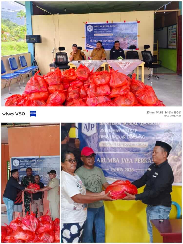 Halmahera Timur — PT Arumba Jaya Perkasa kembali menunjukkan komitmennya dalam mendukung kesejahteraan masyarakat dengan menyalurkan bantuan sosial berupa 850 paket sembako kepada warga di desa lingkar tambang di Kabupaten Halmahera Timur.