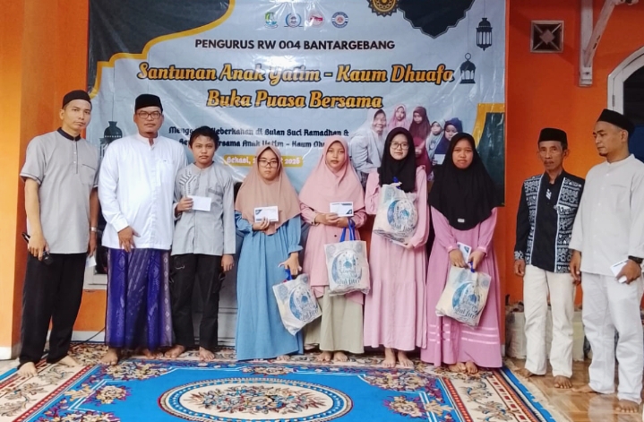Para pengurus RW 04 Kelurahan Bantargebang, Kecamatan Bantargebang, Kota Bekasi, belum lama ini menggelar kegiatan santunan sambil berbuka puasa bersama dengan anak yatim dan kaum dhuafa. Acara berbagi berkah di Bulan Suci Ramafhan ini dirangkai dengan ceramah keagamaan yang disampaikan oleh Ustadz. Abdul Rohim.