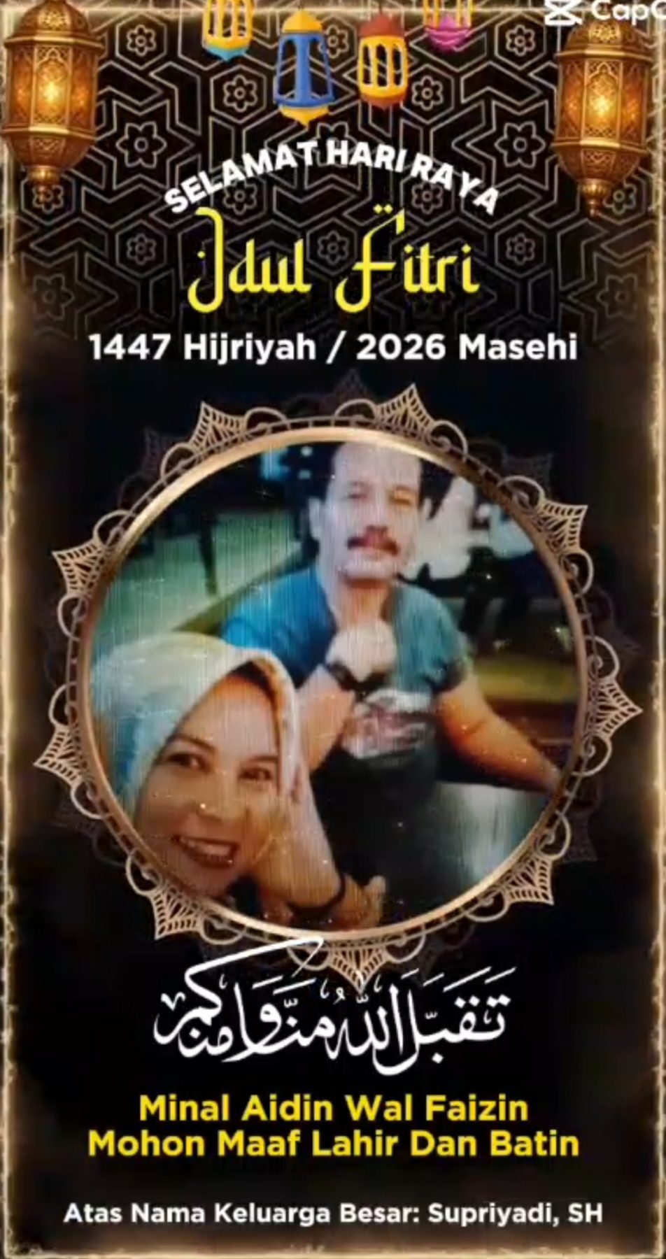 Bpk. Supriyadi, SH dan keluarga menutup ucapannya dengan doa agar bangsa Indonesia senantiasa diberikan kedamaian, persatuan, dan kemakmuran di masa mendatang. “Selamat Hari Raya Idul Fitri 1447 H / 2026 M. Mohon maaf lahir dan batin,” pungkasnya.