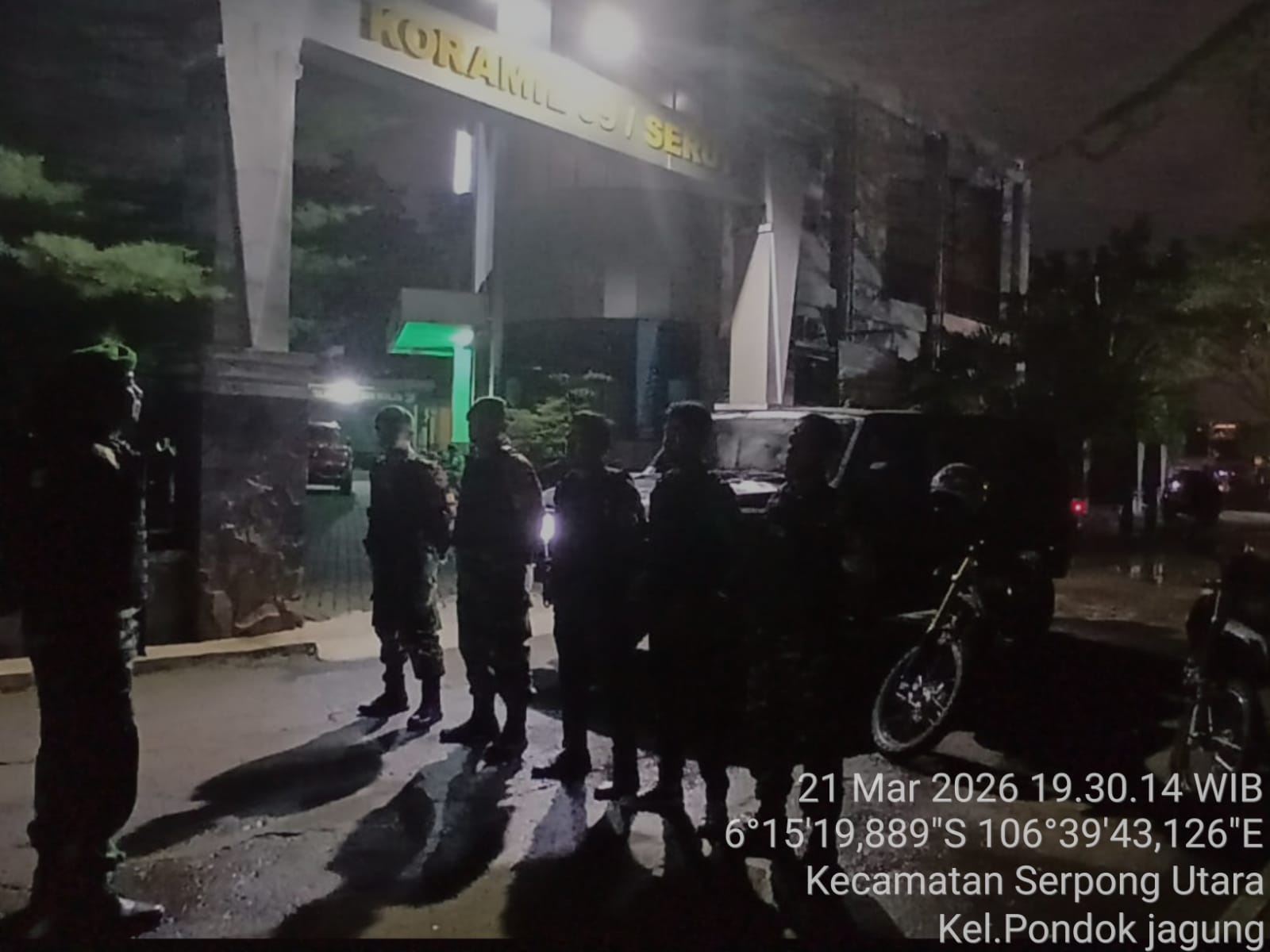 Kodam Jaya, Tangerang – Upaya menciptakan rasa aman di Hari Raya Idul Fitri, 1447 H. tahun 2026, Babinsa Koramil 04 Ciledug dan Babinsa Koramil 09 Serpong Utara, Kodim 0506/Tgr dan Komponen Pendukung (Komduk) tetap melakukan patroli malam, Sabtu (21/03/2026).