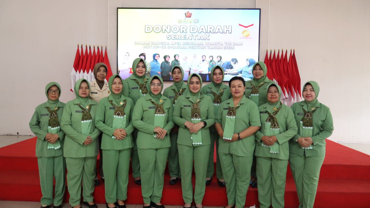 Ny. Fitria Ary Sutrisno Ketua Persit KCK Cabang XX Kodim 0506/Tgr, PD Jaya menyatakan, donor darah yang dilakukan dalam rangka apel bersama wanita TNI dan HUT ke-62 Dharma Pertiwi tahun 2026.