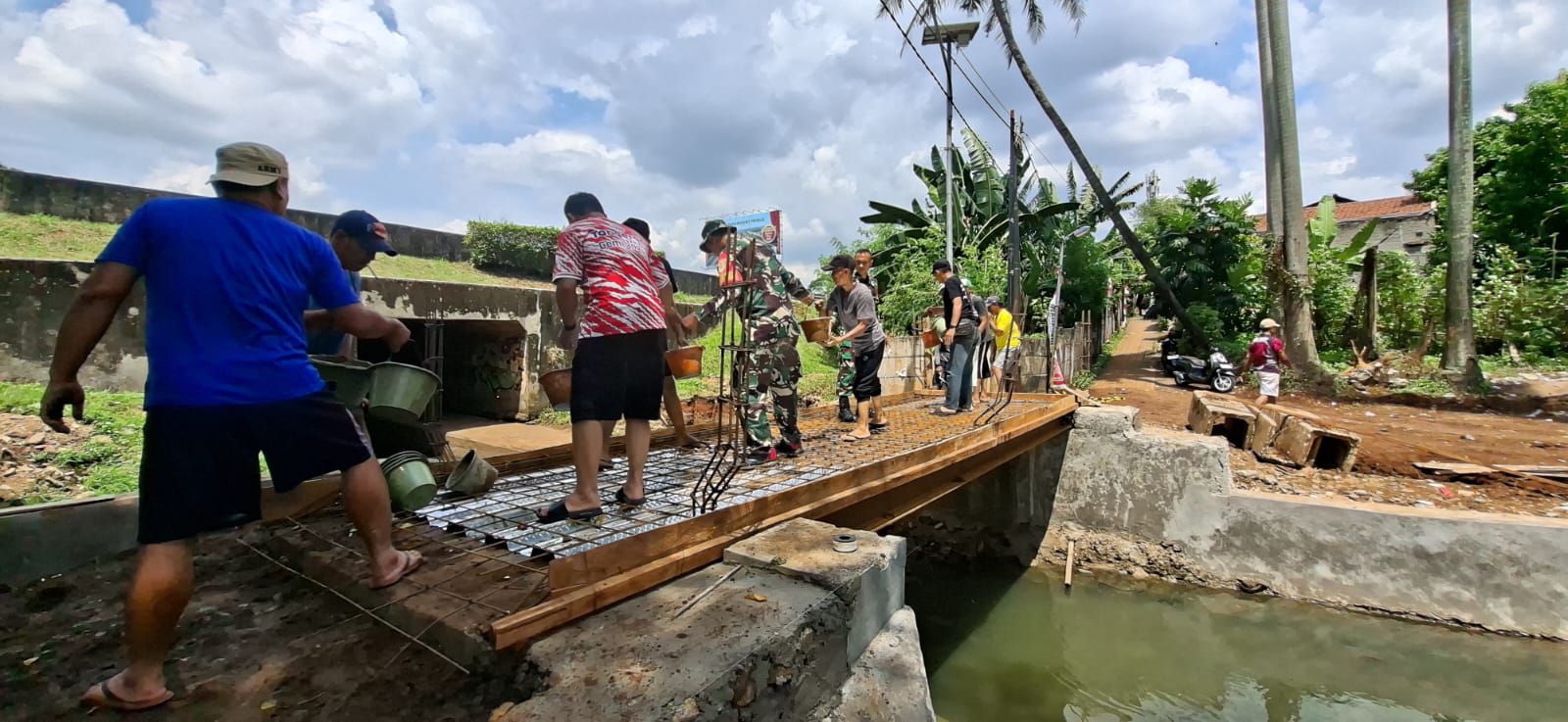 Kodam Jaya, Tangerang – Semangat kebersamaan dan kepedulian terhadap pembangunan jembatan garuda, kembali terlihat di Kelurahan Panunggangan Utara, Kecamatan Pinang, Kota Tangsel, Minggu (05/04/2026).