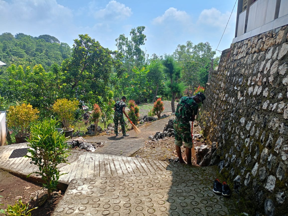 – Danramil 0801/12 Pringkuku Kapten Arh Gino memimpin langsung kegiatan pembersihan (korve) di objek wisata Sentono Gentong yang berada di Dusun Krajan, Desa Dadapan, Kecamatan Pringkuku, Kabupaten Pacitan, Kamis (9/4/2026).