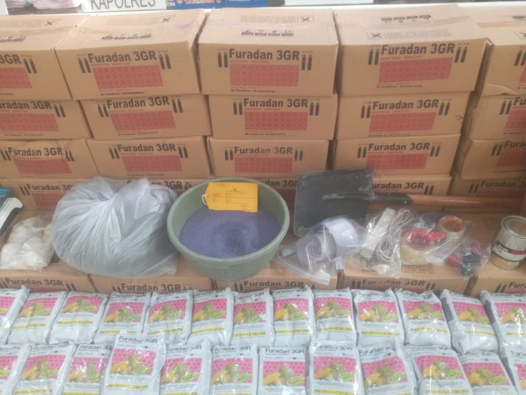 Adapun sambung Kapolres modus operandi para pelaku yakni memproduksi pestisida palsu yang menyerupai merek Furadan 3GR ukuran 2 kilogram. Produk tersebut dibuat dari campuran pasir ayak, bahan kimia pertanian, pewarna, dan air, kemudian dikemas menggunakan kemasan palsu menyerupai produk asli sebelum diedarkan kepada konsumen.
