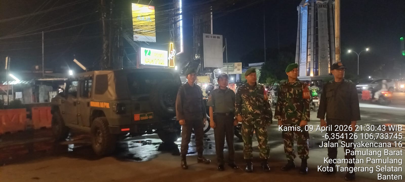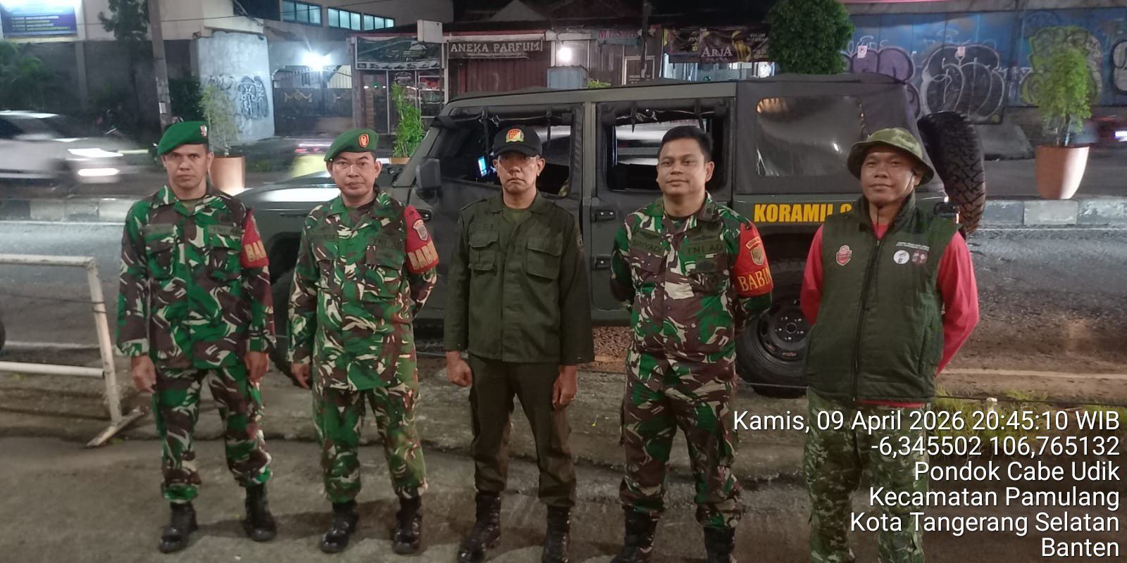 Tangerang | mediapatriot.co.id – Dalam rangka mengantisipasi potensi gangguan keamanan dan ketertiban masyarakat (kamtibmas) seperti tawuran, geng motor, balapan liar, serta tindak kejahatan lainnya, Babinsa Koramil 02/Btc dan Babinsa Koramil 08/Pamulang bersama Komponen Pendukung (Komduk) melaksanakan patroli malam di wilayah teritorial Kodim 0506/Tgr, Kamis malam (09/04/2026).