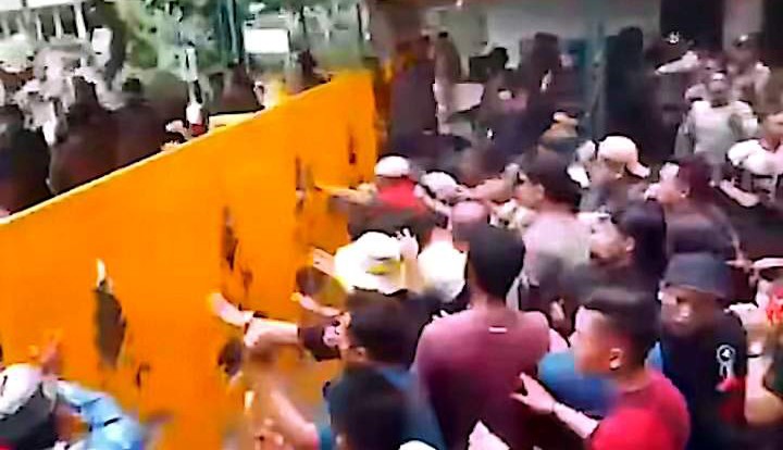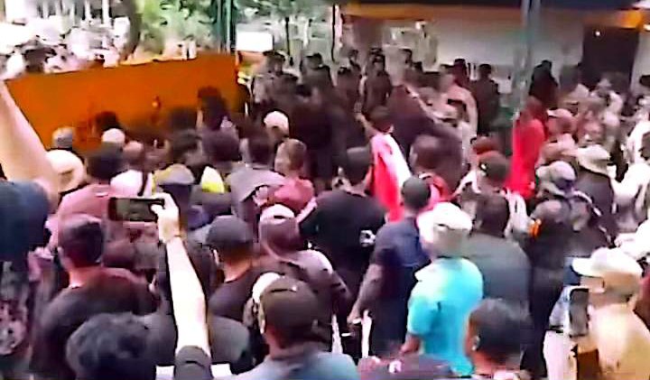 Warga yang merasa diabaikan haknya mulai mendorong pagar hingga akhirnya roboh.