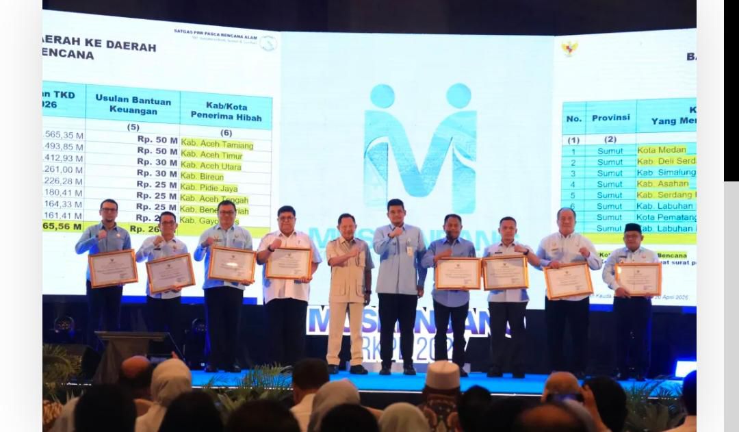 Penghargaan tersebut diberikan atas kebijakan hibah dana Transfer ke Daerah (TKD) sebesar Rp25 miliar yang digunakan untuk mendukung penanganan dan pemulihan pascabencana di Kabupaten Pidie Jaya, Aceh.