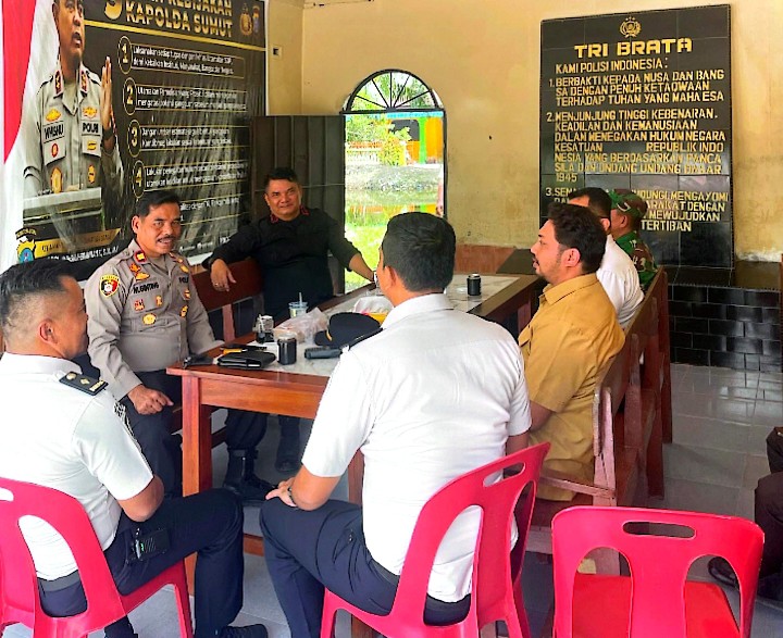 Dalam sebuah pertemuan lintas unsur yang berlangsung di wilayah hukumnya, Kapolsek tampak duduk bersama unsur pemerintah kecamatan dan Danramil 11 Tanjung Pura.