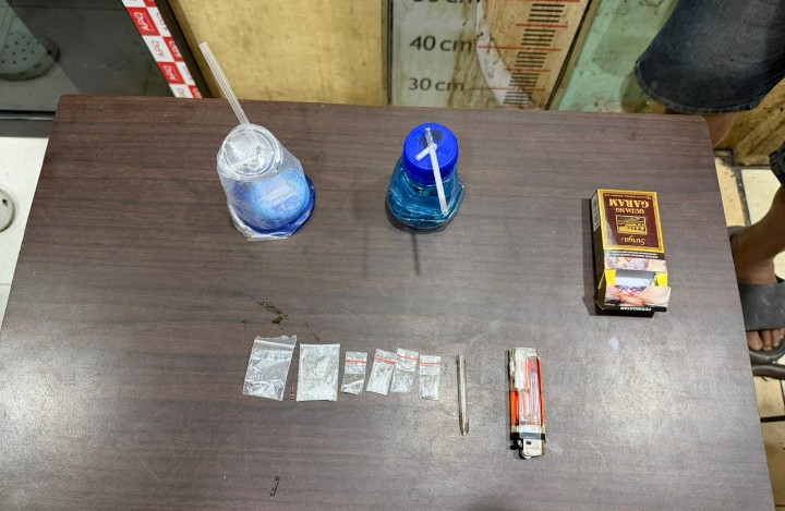 Selain itu, turut diamankan dua alat hisap (bong), satu kaca pirex, serta satu mancis warna merah.