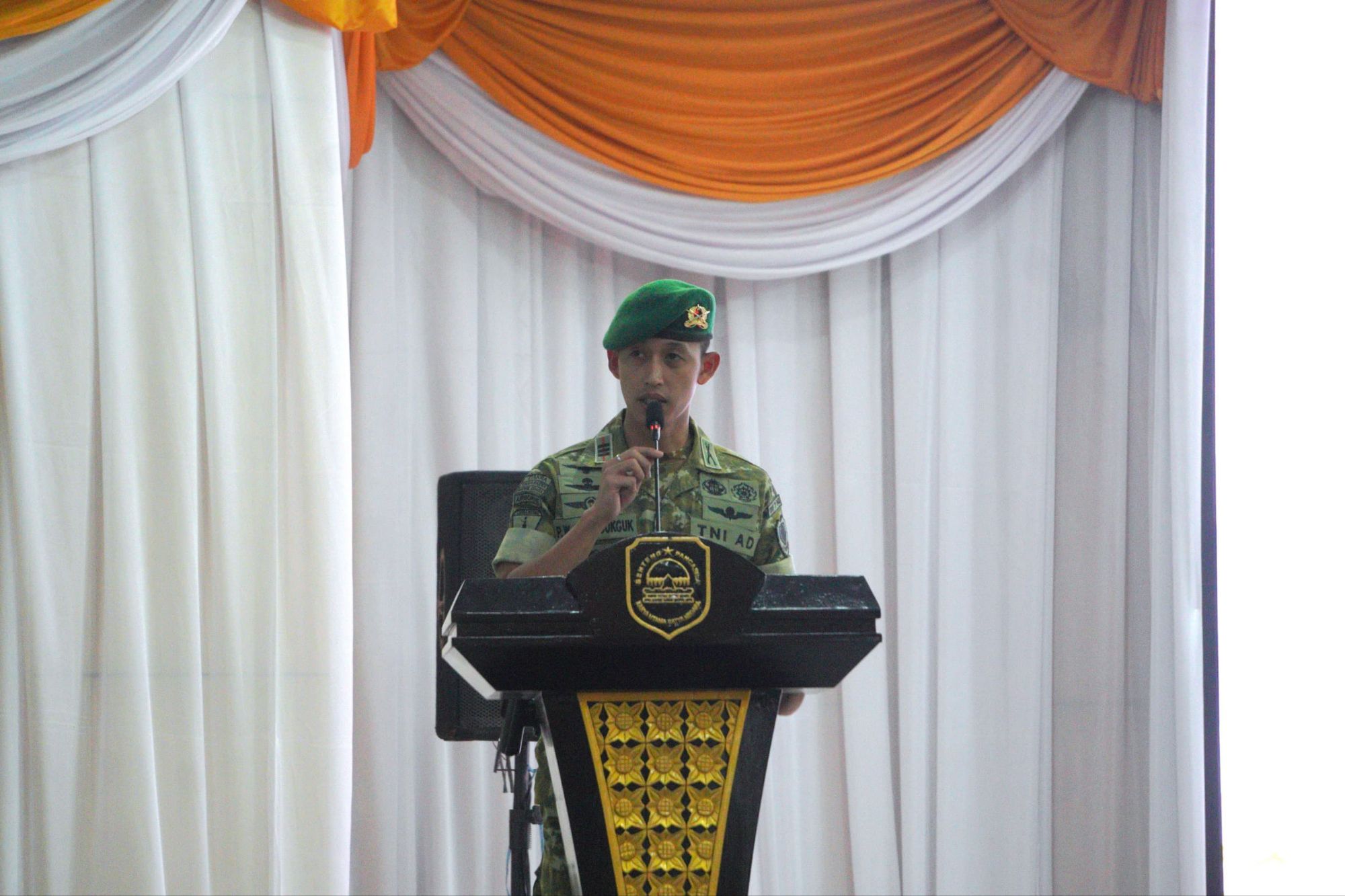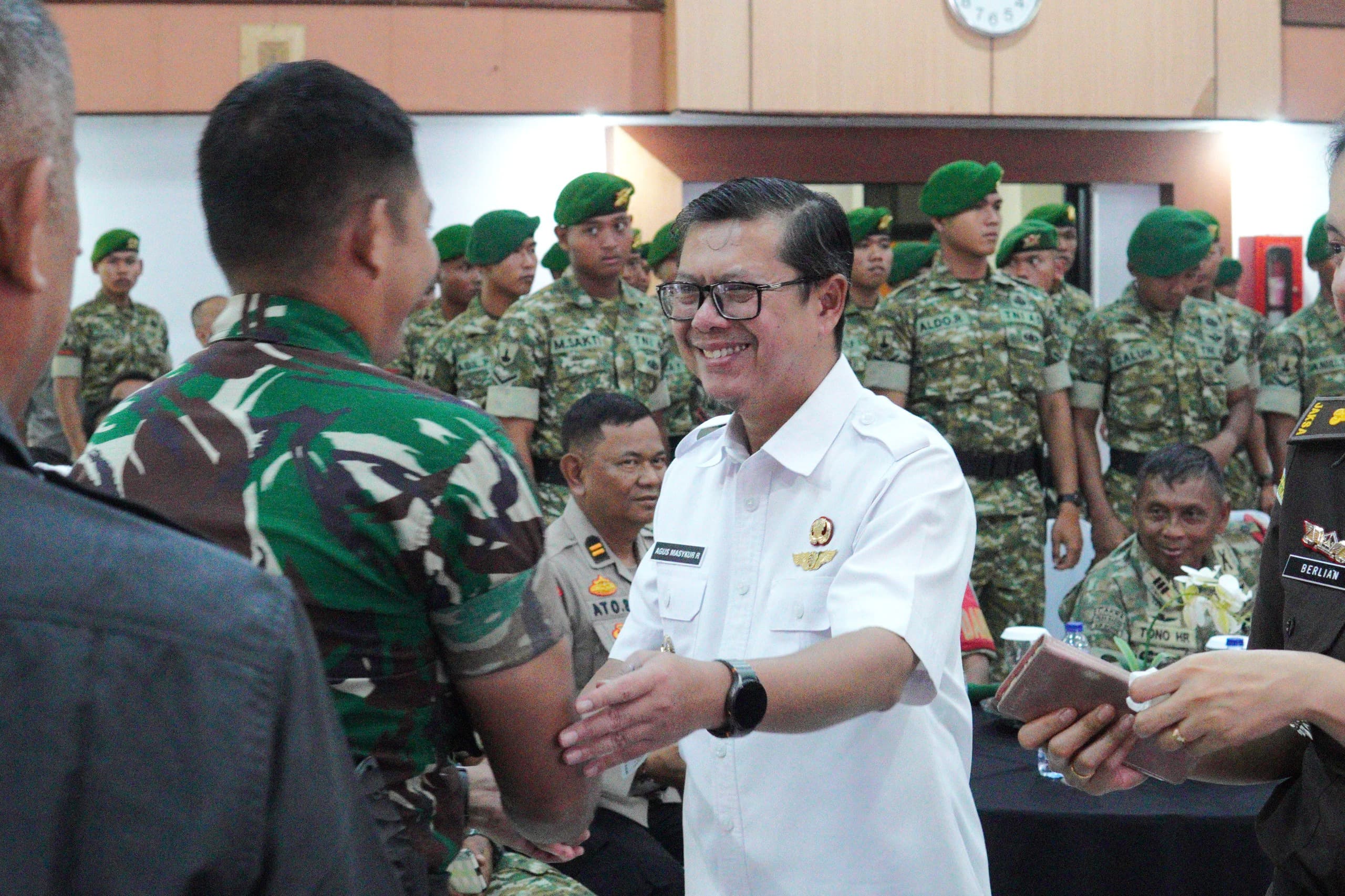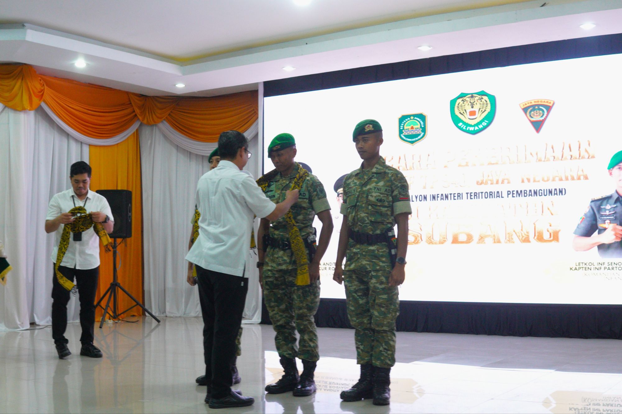 Atas nama Pemerintah Daerah, Wakil Bupati Subang Agus Masykur Rosyadi menghadiri langsung acara penerimaan Yonif TP 940/JN yang berlangsung di Aula Oman Syahroni pada Rabu (22/04/2026).