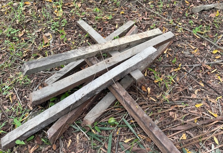 4 batang kayu ukuran 1×2 sepanjang 4 meter.