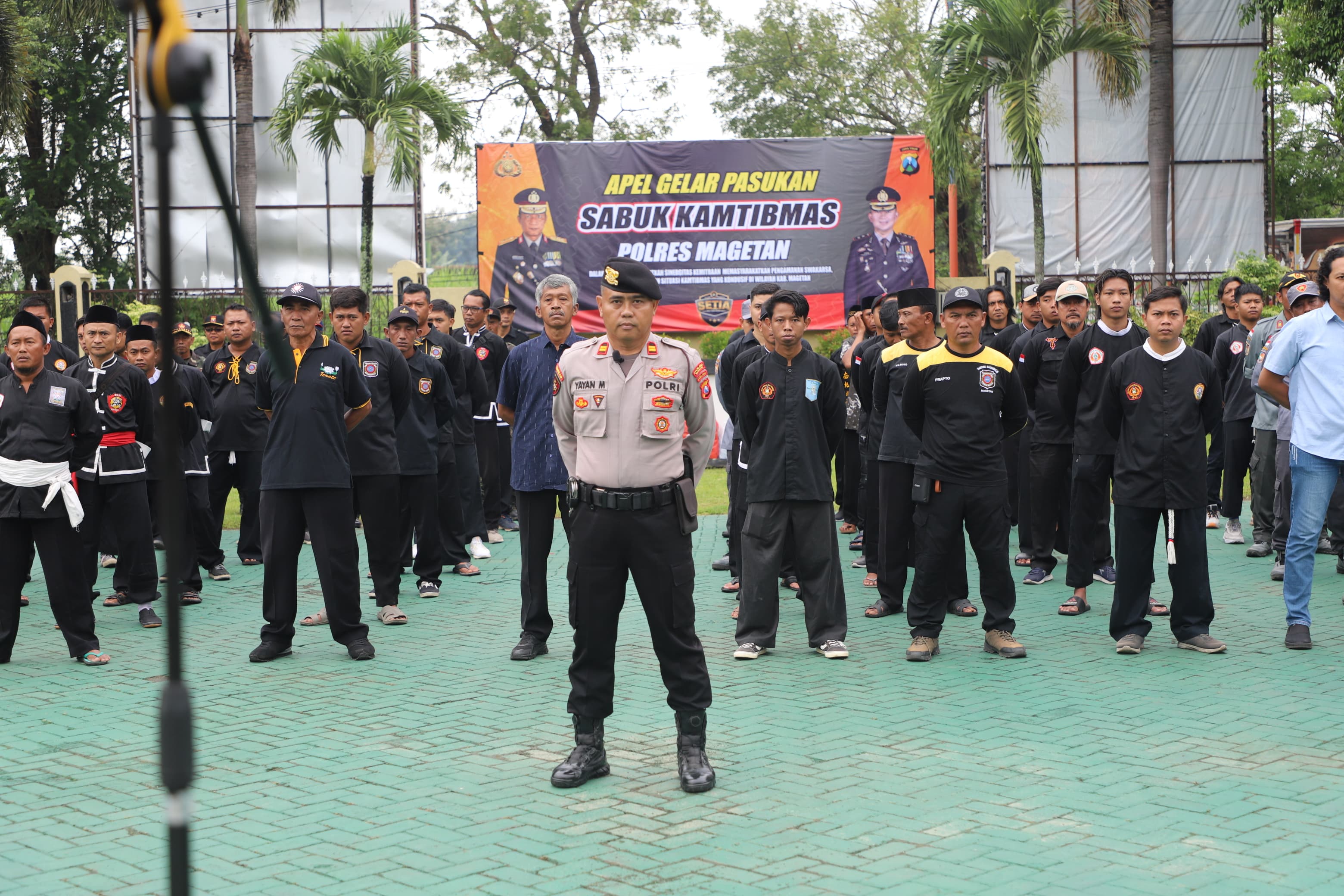 Kegiatan apel tersebut dipimpin oleh Wakapolres Magetan Kompol Dodik Wibowo, S.H., M.H. mewakili Kapolres Magetan AKBP Dr. Raden Erik Bangun Prakasa, serta diikuti sekitar 500 peserta dari berbagai elemen masyarakat. Peserta terdiri dari masyarakat desa, seluruh perguruan silat di Magetan, organisasi kemasyarakatan keagamaan seperti Kokam, Senkom, Banser serta komunitas ojek online (ojol).