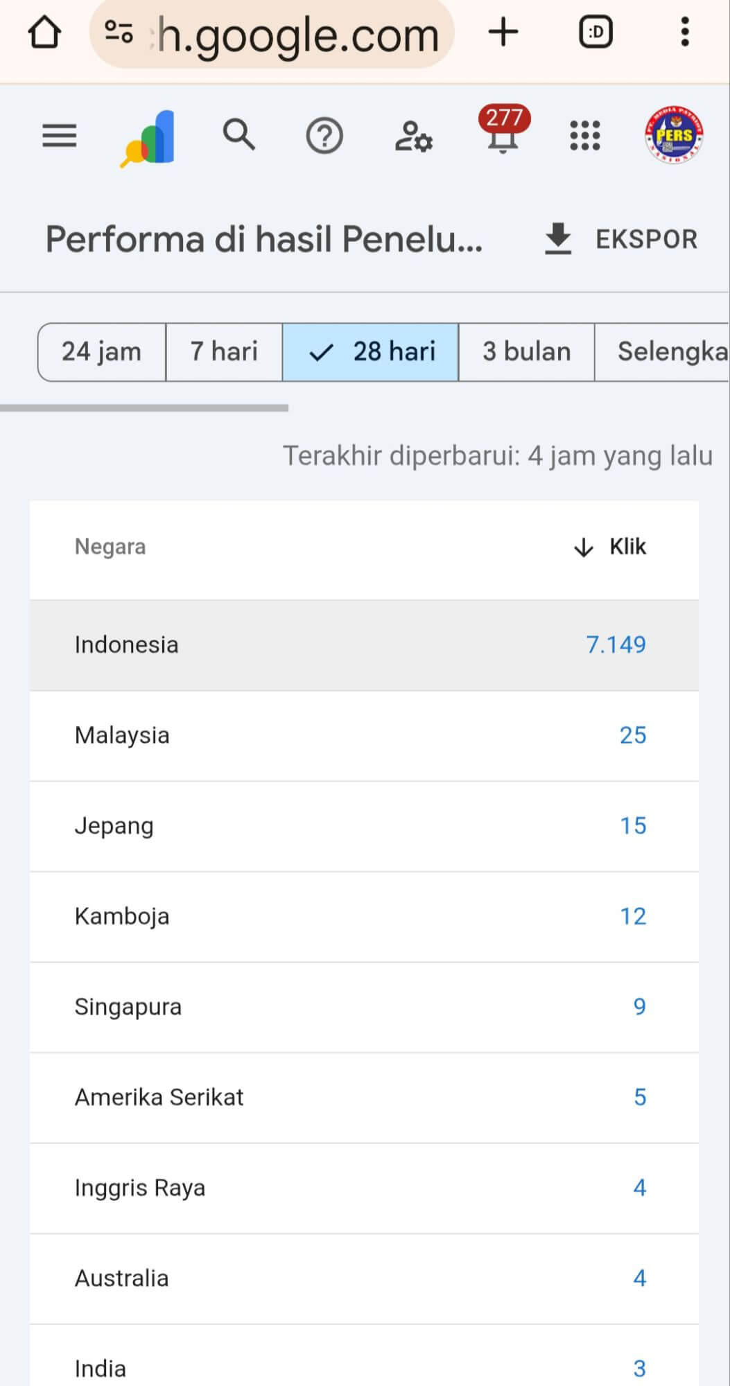 Dalam periode pemantauan terbaru, jumlah klik dan tayangan dari hasil penelusuran Google menunjukkan konsistensi yang baik. Mayoritas trafik masih didominasi oleh pembaca dari Indonesia dengan total 7.149 klik, menandakan kuatnya kepercayaan publik nasional terhadap konten berita yang disajikan Mediapatriot.co.id.