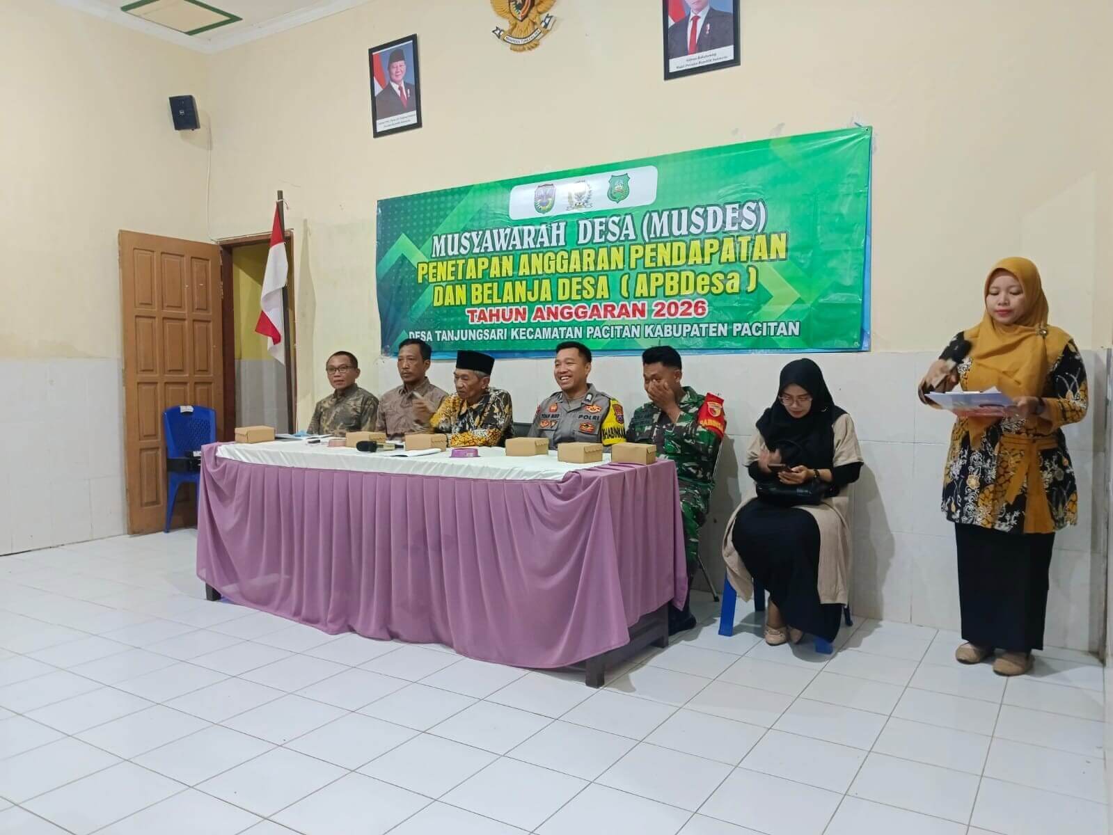 mediapatriot.co.id. Pacitan – Babinsa Koramil 0801/01 Pacitan, Sertu Imam Indra, menunjukkan peran aktifnya selaku aparat komando kewilayahan dengan menghadiri Musyawarah Desa (Musdes) dalam rangka pembahasan dan pengesahan Rencana Kerja Pemerintah Desa (RKPDes) Tahun Anggaran 2026. Kegiatan tersebut diselenggarakan oleh Pemerintah Desa Tanjungsari dan berlangsung di Gedung Balai Desa Tanjungsari, Kecamatan/Kabupaten Pacitan, Jumat (23/1/2026).