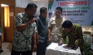 Sukabumi – MediaPatriot.co.id Pemerintah Kecamatan Cidahu menggelar Musyawarah Perencanaan Pembangunan (Musrenbang) Tingkat Kecamatan Tahun Anggaran 2026 sebagai bagian dari penyusunan Rencana Kerja Pemerintah Daerah (RKPD) Kabupaten Sukabumi Tahun 2027. Forum yang berlangsung di Aula Kecamatan Cidahu, Kabupaten Sukabumi, pada Kamis 12 Pebruari 2026, menjadi ruang strategis untuk menyatukan gagasan, kebutuhan, serta arah kebijakan pembangunan dari tingkat desa hingga kabupaten.