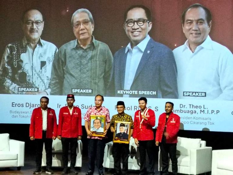 Sementara pembicara yang dihadirkan dalam sesi Diskusi yaitu Erros Djarot Budayawan (Seniman dan Tokoh Bangsa); Ir. Suko Sudarso (Tokoh Bangsa dan Aktivis Politik); Dr. Theo L. Sambuaga, M.I.P.P., (Presiden Komisaris PT Lippo Cikarang Tbk); Prof. Dr. Drs. Adv. Ganjar Razuni, S.H. (Guru Besar Ilmu Politik Universitas Nasional).