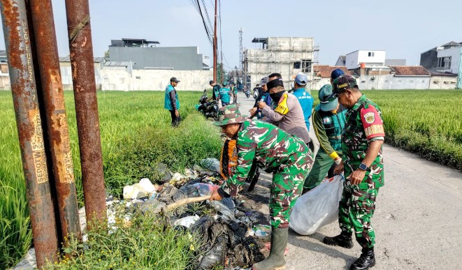Manual Atasi Sampah, Satgas Sektor 8 Dan Relawan Turun Ke Sungai Citarum.